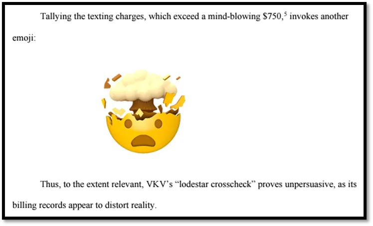 En este contexto, el uso de un emoji incorpora visualidad a la expresión escrita, permitiendo transmitir una idea que -en el caso concreto- aparece muy clara: si leemos toda la sentencia, veremos que el emoji no hace otra cosa que coronar lo que, hasta allí, viene explicando el juez Brown en palabras.